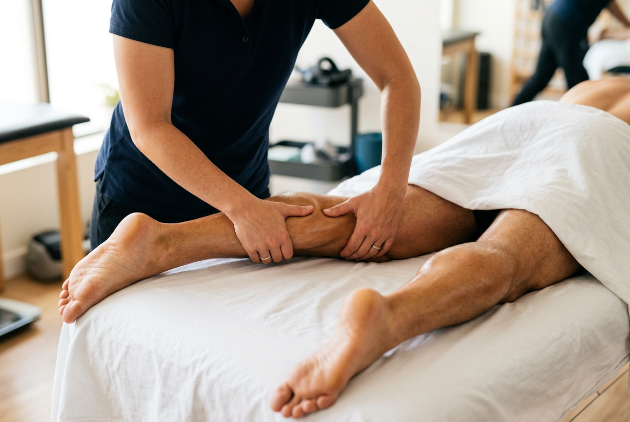Performance-focused massage combining deep pressure with assisted stretching, trigger point therapy and muscle energy techniques. Designed for active people — from weekend runners to competitive athletes in Berlin.